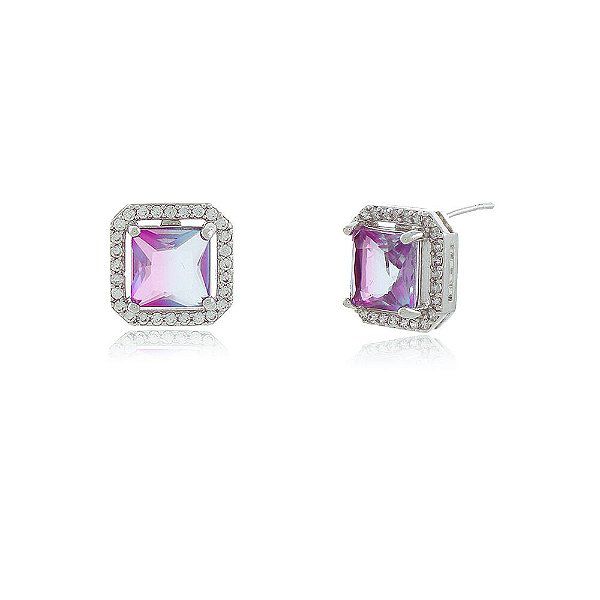 Brinco Banho Ródio Branco Pedra Ônix Roxo
