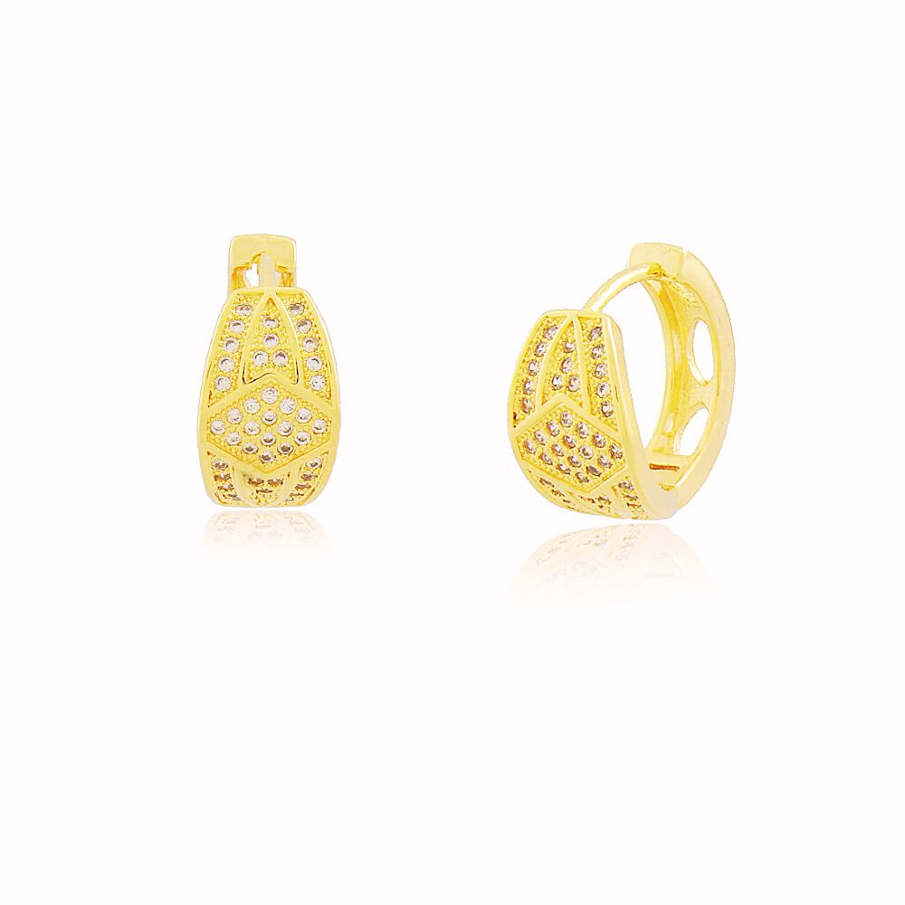 Brinco Click Cravejado Zircônia Banho Ouro Quebec 18k