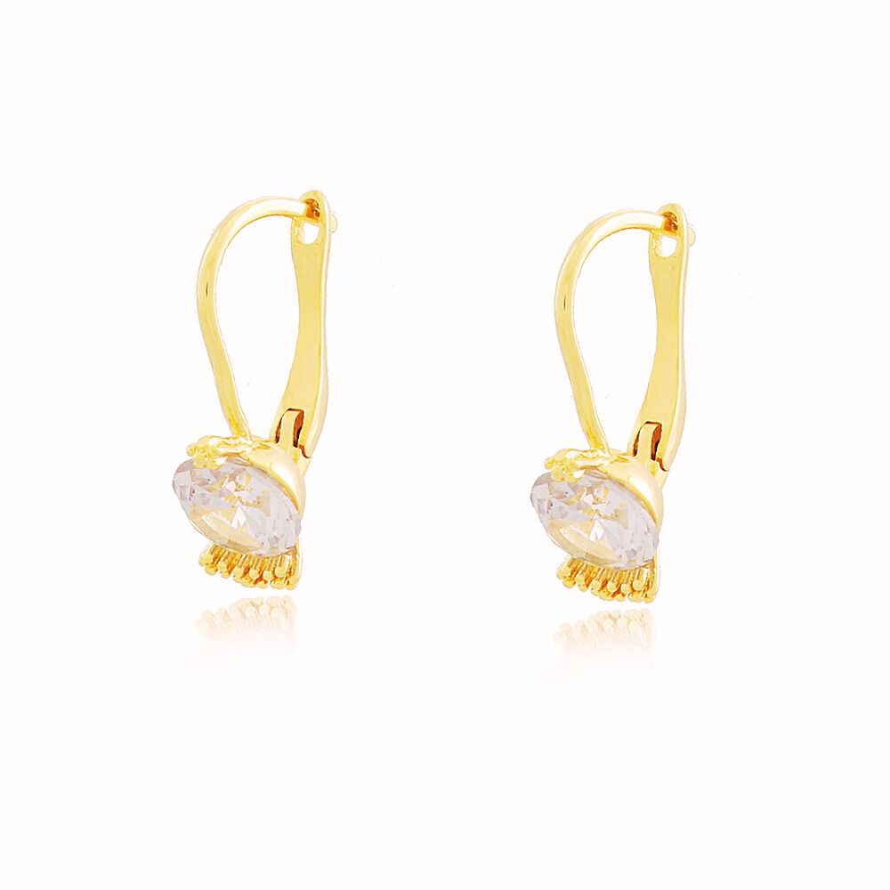 Brinco Clique Pedra Ônix Incolor Banho Ouro Quebec 18k