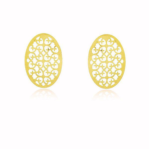 Brinco Coração Oval Banho Ouro Quebec 18k