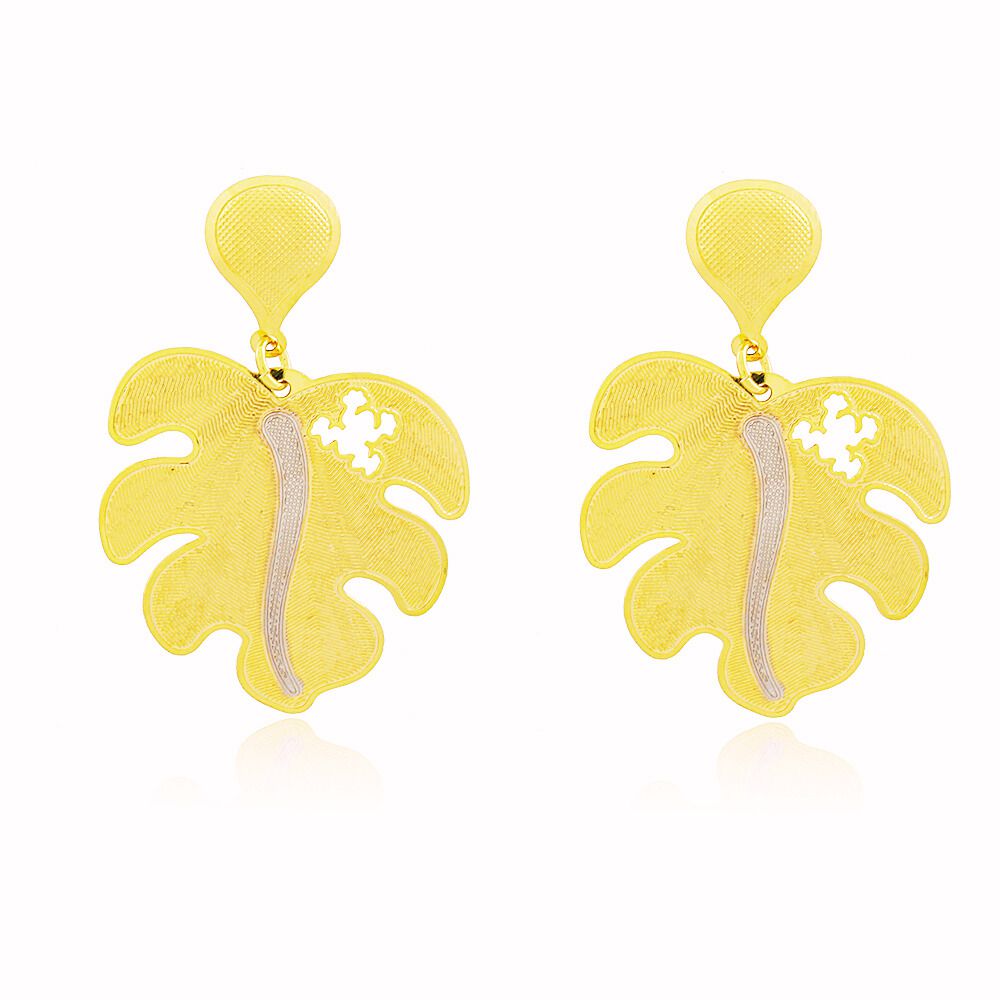 Brinco Folha Detalhe Ródio Banho Ouro Quebec 18k