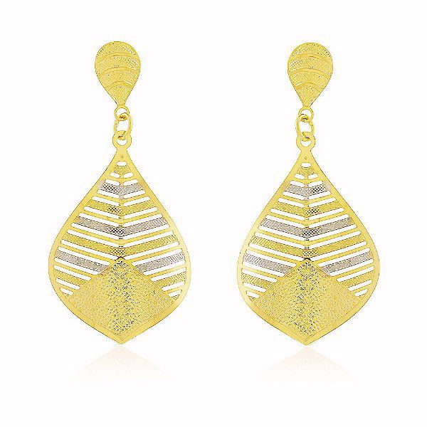 Brinco Pétalas Detalhes Ródio Banho Ouro Quebec 18k