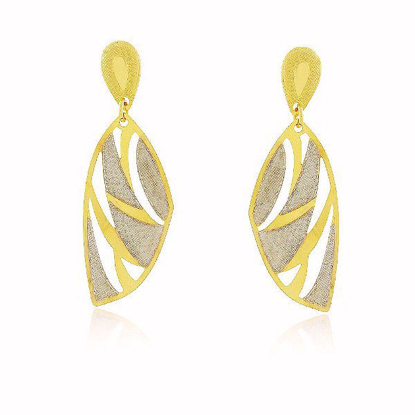 Brinco Pétalas Detalhes Ródio Banho Ouro Quebec 18k