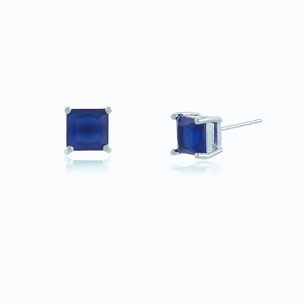 Brinco Quadrado Banho Ródio Negro Pedra Ônix Azul